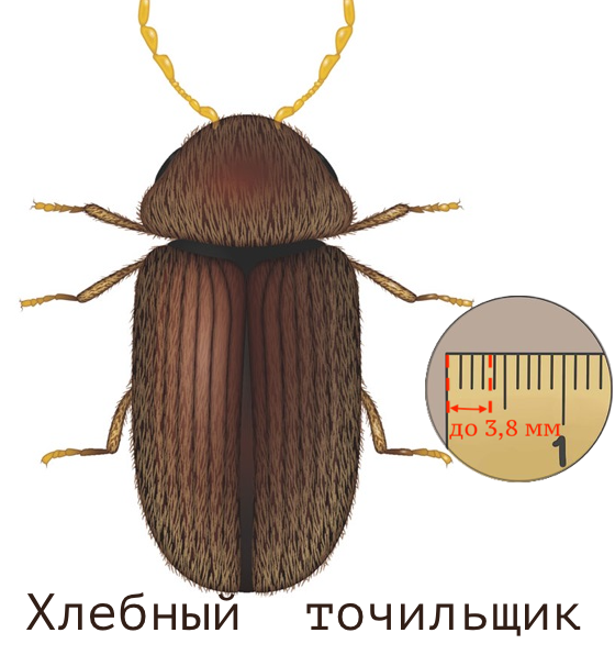 Виды насекомых-вредителей, которых Вы можете встретить на кухне в крупеРассмотрим основные виды насекомых-вредителей, которых Вы можете встретить на кухне в крупе: Хлебный точильщик