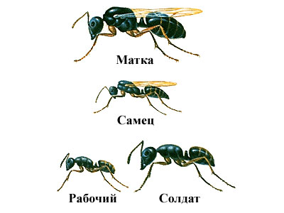 Существует более 6 тысяч муравьев, самые популярные рыжие и черные. Они, как и тараканы очень живучие и могут приспособиться под любые условия. Колония состоит из матки, которая откладывает яйца, крылатых самцов и бескрылых самок — рабочих особей, солдат.